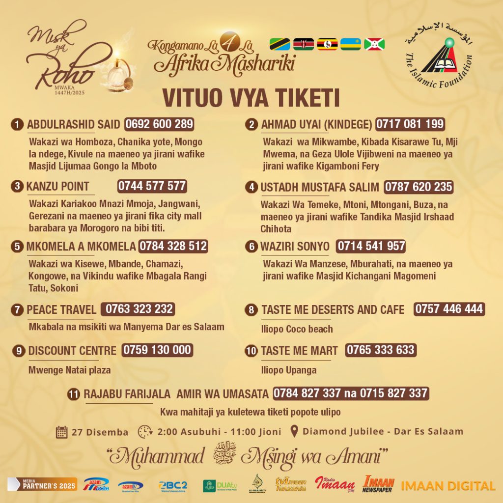 Home/MISK YA ROHO 2025/ZIMEBAKI TAKRIBANI SIKU 03 KUELEKEA KWENYE KONGAMANO LA AFRIKA MASHARIKI ‘MISK YA ROHO’ 2025 MISK YA ROHO 2025 ZIMEBAKI TAKRIBANI SIKU 03 KUELEKEA KWENYE KONGAMANO LA AFRIKA MASHARIKI ‘MISK YA ROHO’ 2025 Abdulrahman Omary Ibrahim Send an email 0 47 Less than a minute Facebook X LinkedIn Tumblr Pinterest Reddit VKontakte Odnoklassniki Pocket Abdulrahman Omary Ibrahim Send an email 0 47 Less than a minute Facebook X LinkedIn Tumblr Pinterest Reddit VKontakte Odnoklassniki Pocket Share Facebook X LinkedIn Tumblr Pinterest Reddit VKontakte Odnoklassniki Pocket Share via Email Print